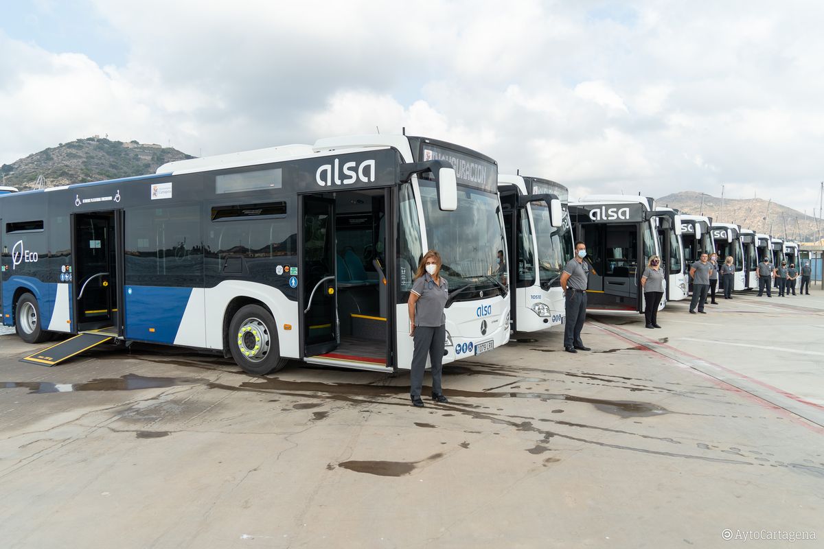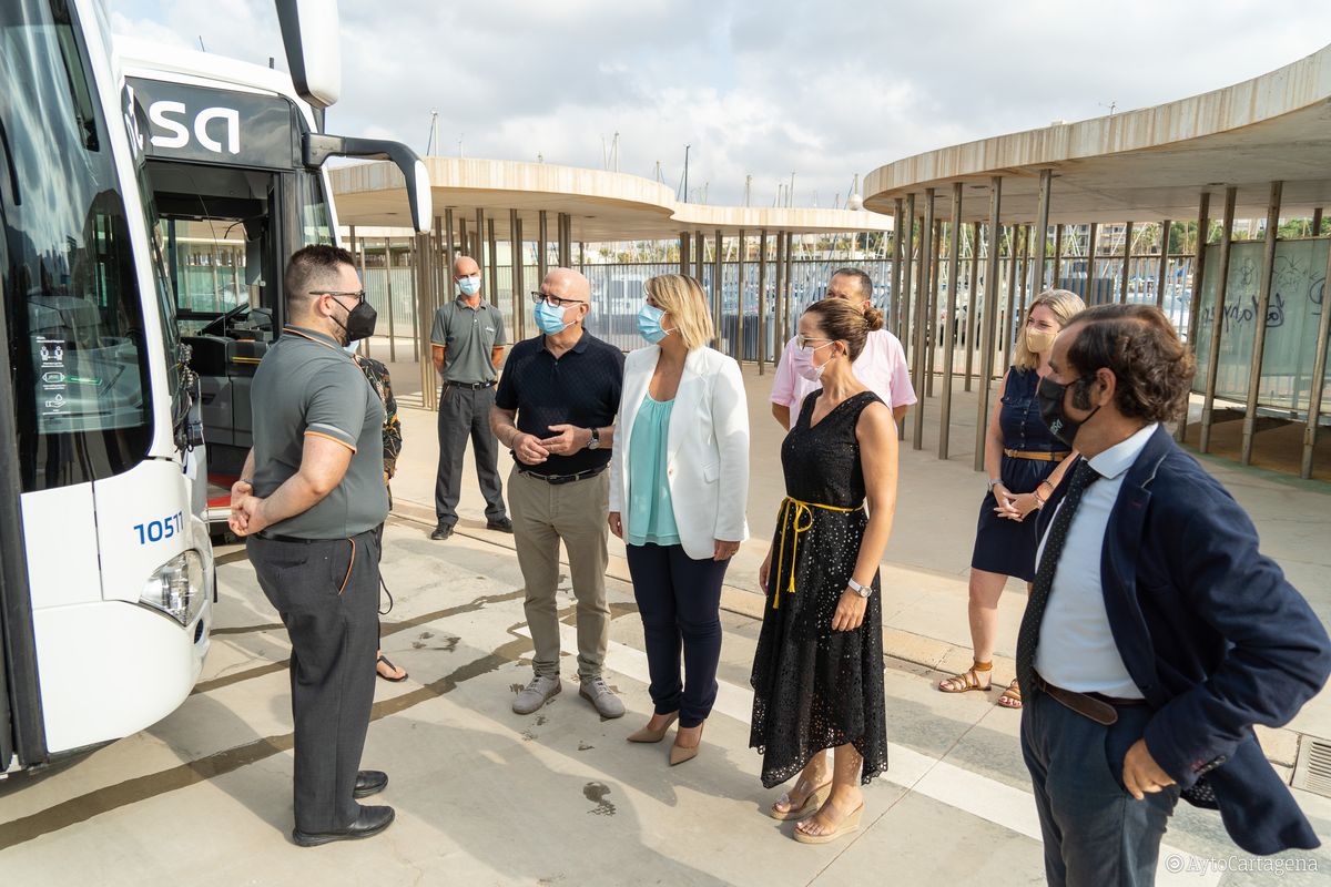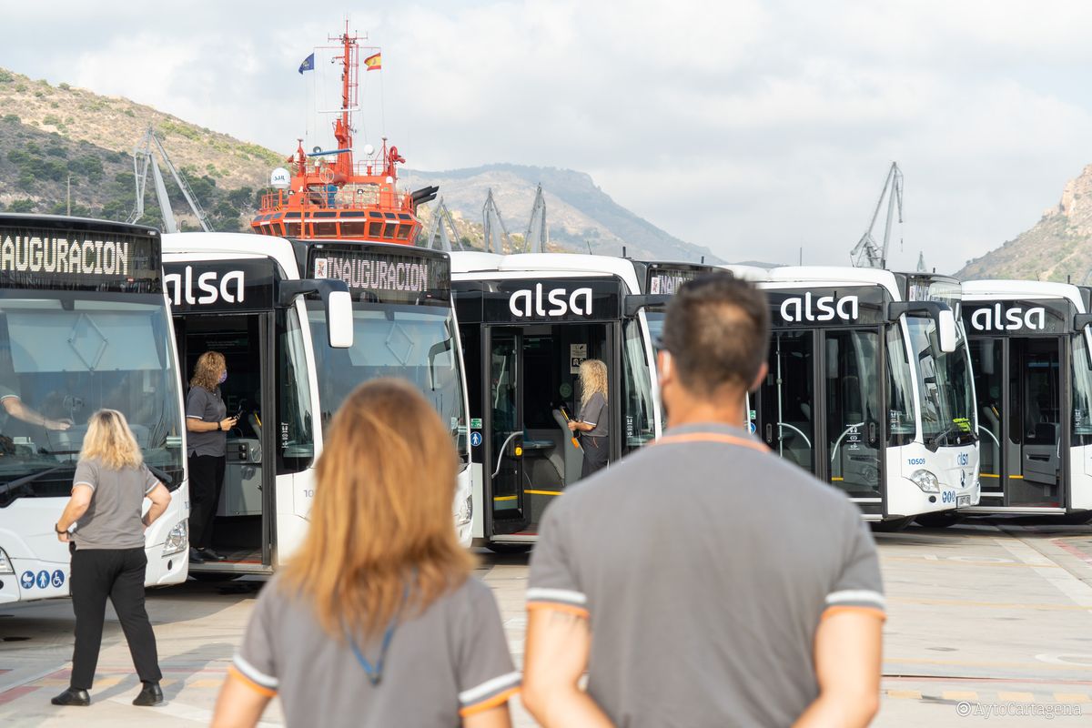 En total se han presentado 9 autobuses con capacidad para 83 pasajeros, uno de ellos en silla de ruedas y 25 sentados; y otro bus más con capacidad de hasta 96 pasajeros, dos de ellos en silla de ruedas y 25 sentados, que se incorporan a la Línea 1, que discurre entre Capitanes Ripoll y San Félix; la Línea 4, del Parque Mediterráneo a Canteras; la Línea 6, de plaza de Alicante a Molinos Marfagones y finca Buenos Aires; y la Línea 7, de Cartagena al polígono de Santa Ana.