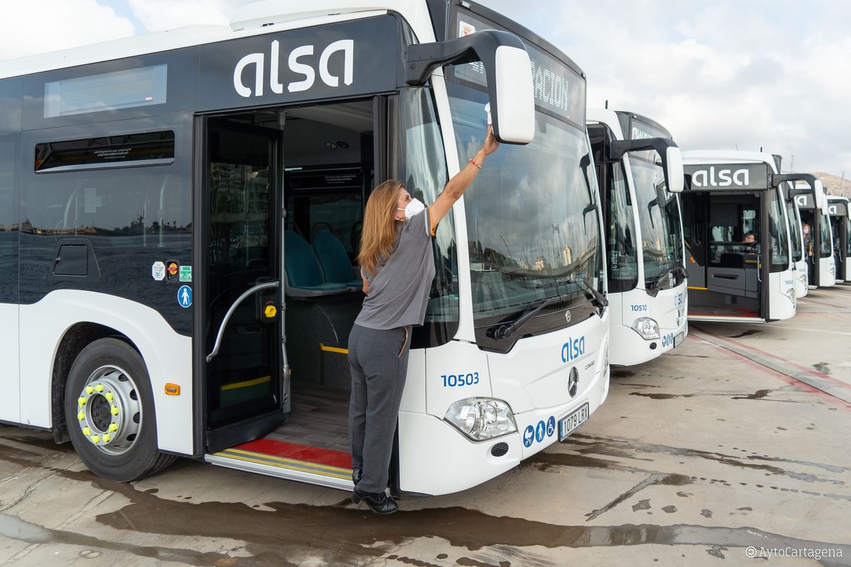 El Ayuntamiento de Cartagena ha renovado la quinta parte de su flota de autobuses urbanos, con la adquisición de 10 nuevas unidades más modernas y eficientes, y menos contaminantes, según ha anunciado la alcaldesa de Cartagena, Noelia Arroyo, que ha presentado esta renovación de la flota en la terminal de cruceros del Puerto de Cartagena, junto al Director de Alsa zona Mediterránea, Valeriano Díaz, acompañados por al vicealcaldesa, Ana Belén Castejón, el teniento de alcalde, Manuel Padín, y la concejal de Infraestructuras, María Casajús.