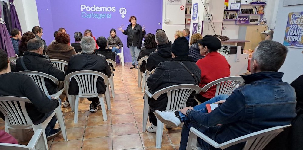 La iniciativa organizada por Podemos Cartagena se enmarca en los actos previos al 'Día internacional de la mujer'. El acto contó con representantes de UGT, CCOO, Federación Vecinal y representantes de colectivos sociales del municipio.