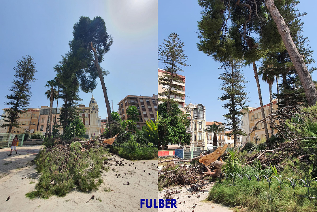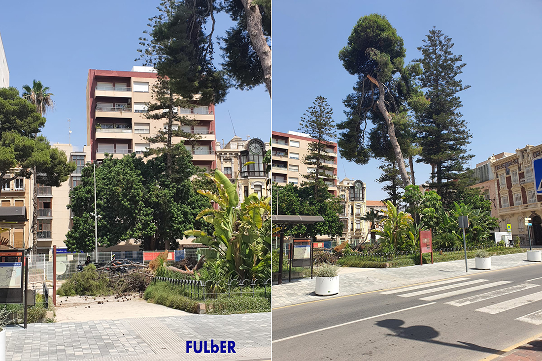 Escasos minutos antes de las doce y media de hoy se ha producido el desprendimiento de una rama desde más de diez metros de altura en la plaza de la Merced. Por fortuna, no hay que lamentar daños.