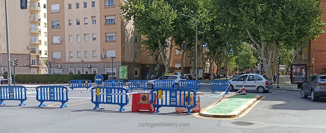 El pasado fin de semana se produjo un accidente de tráfico en este cruce entre la avenida de Reina Victoria con la calle Wssell de Guimbarda en Cartagena, que supuso el derribo de una farola, que ha sido retirada del lugar. Este área quedó acotada con una cinta y los vecinos se preguntan si es por la colisión o es que se prepara la construcción de una rotonda.