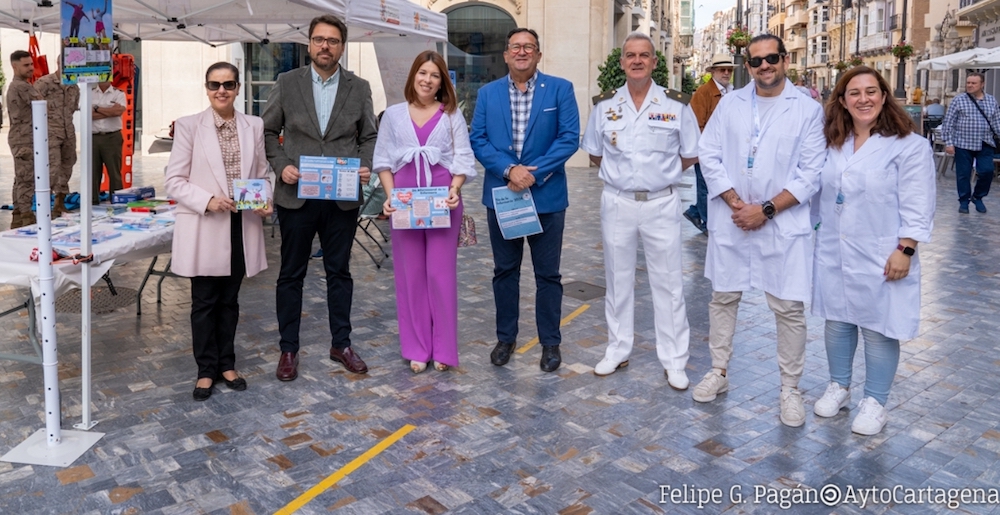 El concejal del área de Empleo, Formación y Contratación, Álvaro Valdés, ha asistido a la inauguración de este evento, en el que colabora también el Ayuntamiento de Cartagena y las Fuerzas Armadas. Junto a él se encontraba Esther Baeza, tesorera del Colegio de Enfermería.