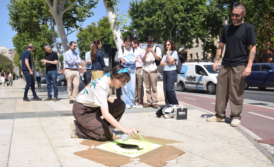 La intervención ha concluido con una charla con el muralista Zësar Bahamonte que está pintando todo el lateral del edificio que acoge el Museo del Agua y de la Energía de la UPCT, que este viernes por la noche será reinaugurado con un mini-festival artístico que incluirá música, danza vertical y videoproyecciones.