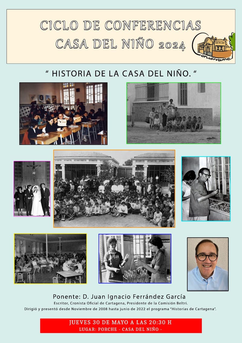 Esta es la segunda conferencia titulada "Historia de la Casa del Niño" y organizada por la Comisión Casa del Niño, dentro del ciclo de Conferencias que se está desarrollando, a lo que hay que sumar el Concierto de Música que se realizará el próximo catorce de junio, en las instalaciones de la Casa del Niño.