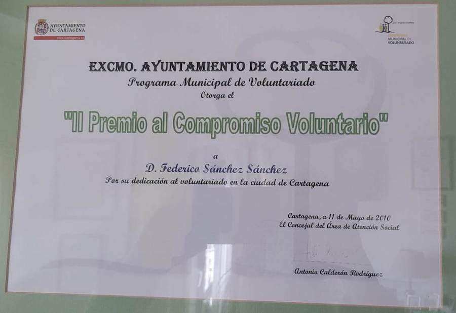 En el año 2008 los Hijos de María le reconocieron su fidelidad con la entrega de una placa. En el 2010 el ayuntamiento le otorgó el II Premio al Compromiso Voluntario. Pero ha sido ahora, en el año 2024 cuando la Asociación Española Contra el Cáncer (AECC) de Cartagena ha distinguido a Federico Sánchez Sánchez con el nombramiento de “voluntario más longevo” en el servicio de ayuda a los afectados por esta enfermedad.