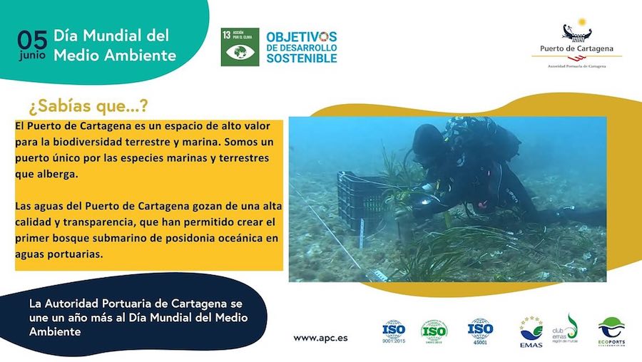 #GeneraciónRestauración en la Autoridad Portuaria de Cartagena. La Autoridad Portuaria de Cartagena trabaja todo el año por conservar y mejorar su entorno, siendo parte activa de la #GeneraciónRestauración que impulsa Naciones Unidas. Esta gestión ambiental impacta directamente en la protección de los ecosistemas marinos y en la conservación del estado general de nuestro entorno natural terrestre y marino, llevando a cabo desde la APC distintas iniciativas dirigidas, entre otros aspectos, a la vigilancia permanente de las aguas, su estado fisicoquímico y mantenimiento para conseguir residuo cero y a la conservación y fomento de la biodiversidad en el puerto.