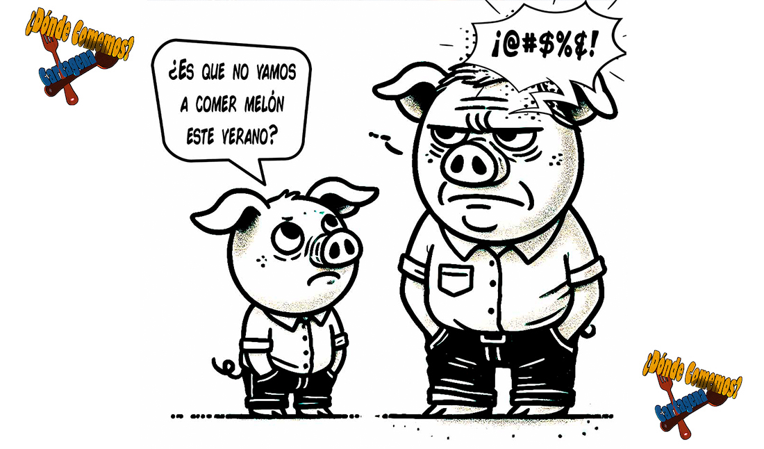 La final de la Liga Nacional de Fútbol Sala se ha resuelto en favor del conjunto melonero del Jimbee Cartagena frente al jamonero de ElPozo Murcia. Este asunto ha merecido esta simpática caricatura del portal ‘¿Dónde comemos?, Cartagena’, que dirigen Aida Belmonte y Enrique Costa.
