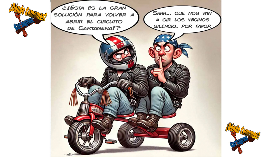 El asunto del circuito de velocidad de Cartagena, ubicado en La Guía, sigue candente entre los que critican el ruido que genera en el entorno y los que están en contra de que se le haya paralizado su actividad. Sobre este tema gira la caricatura del portal ‘¿Dónde comemos?, Cartagena’, que dirigen Aida Belmonte y Enrique Costa.