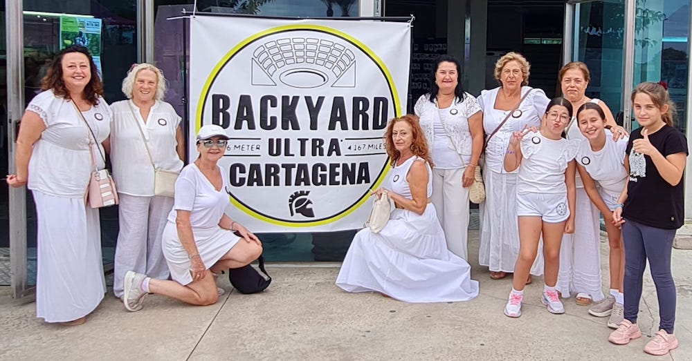 Una representación de la Asociación de Mujeres Carmesí ha sido las encargadas de dar la salida a la cuarta ronda de la segunda edición de la prueba de carrera de resistencia 'Back Yard Ultra'.