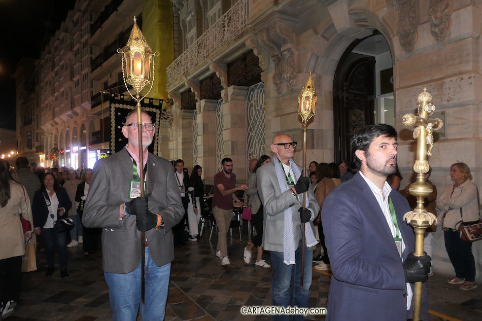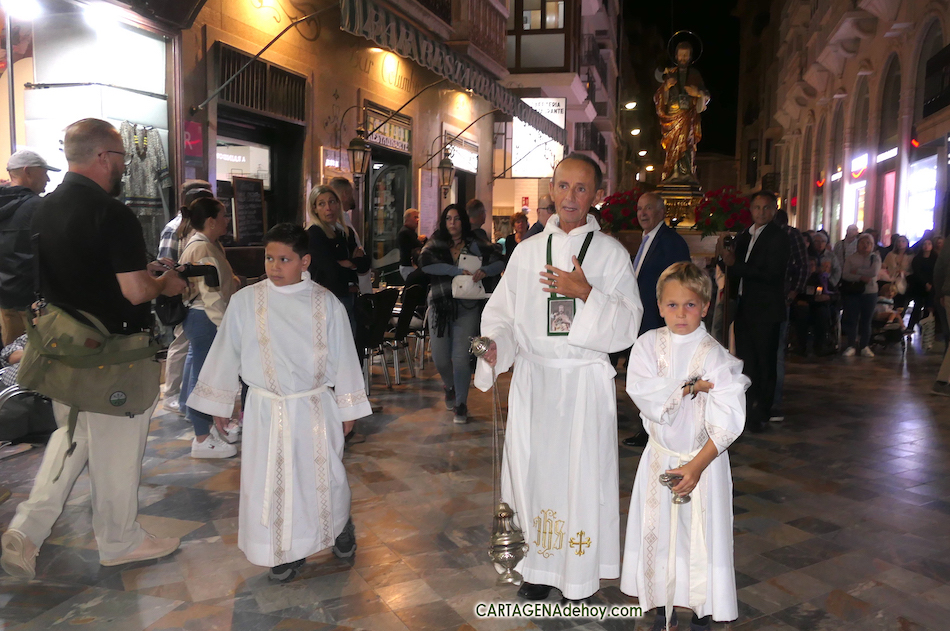 Es un santo cuya devoción va en aumento, como se reflejó en la procesión por Cartagena, con más de trescientos fieles tras la imagen en una procesión que transcurrió por un centro urbano abarrotado de personas y que fue aderezada por oraciones en diferentes paradas. La imagen fue llevada hasta Santo Domingo a hombros por costaleros de ambos sexos.