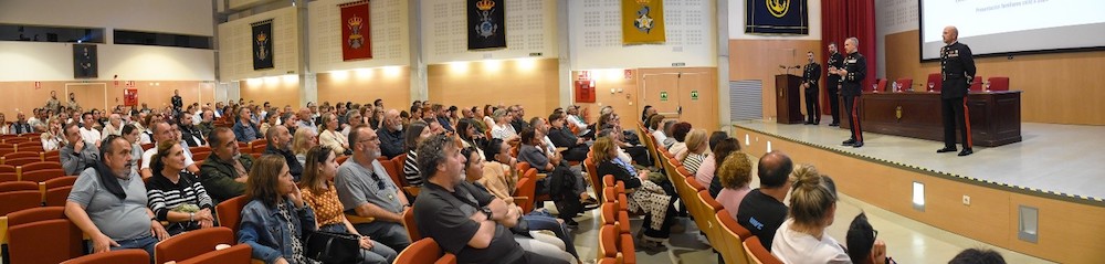 Los familiares que han acompañado a los alumnos en su incorporación a la Escuela han sido recibidos por el Coronel-Director en el Salón de Actos. En este espacio, se les ha presentado una reseña sobre la historia y actualidad de la EIMGAF, así como una introducción al plan de formación que seguirán sus familiares en los próximos meses.