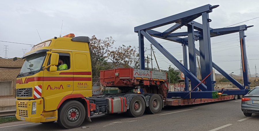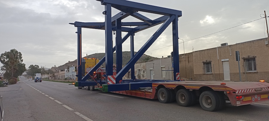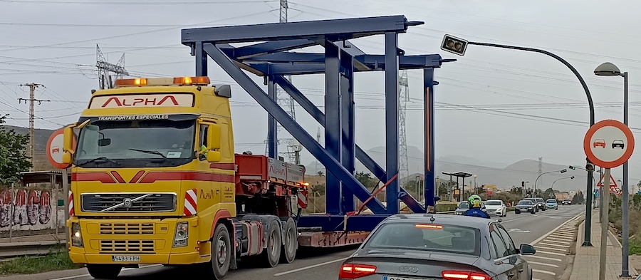 El traslado de una pieza de enormes proporciones por la carretera Cartagena-La Unión con destino a Escombreras provocó ayer la interrupción de tráfico rodado y que un camión con elevador fuese por delante girando los semáforos elevados para que pudiera pasar.