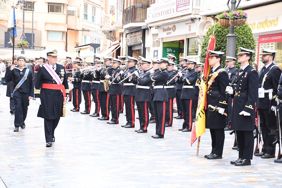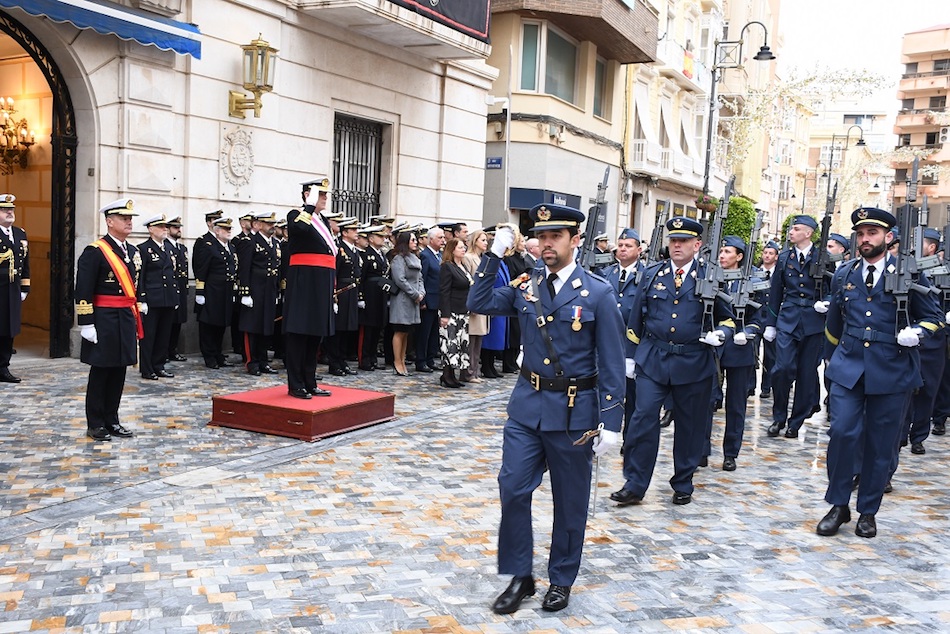 Además, una compañía mixta de honores ha realizado un desfile militar frente al edificio de Capitanía General. La Fuerza estaba constituida por una escuadra de gastadores y una banda de música, cornetas y tambores del Tercio de Levante de la Infantería de Marina, una sección del Regimiento de Artillería Antiaérea RAAA-73 del Ejército de Tierra, una sección del Ejército del Aire y del Espacio procedente de la Academia General del Aire, una sección de la Armada compuesta por personal del Arsenal de Cartagena, Fuerza de Acción Marítima, Flotilla de Submarinos y de la Fuerza de Medidas Contra Minas, y una sección de la Guardia Civil de la 5ª Zona.