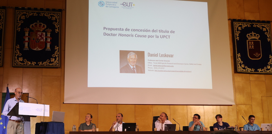 El ingeniero agrónomo e investigador de la Universidad de Texas A&M Daniel Iván Leskovar preside la Sociedad de Ciencias Hortícolas más grande del mundo, con cerca de cinco mil miembros de más de 60 países. En la UPCT ha impartido dos seminarios, ha colaborado en una tesis doctoral y ha publicado artículos de investigación junto al profesor José Antonio Franco, quien apadrinará su investidura, propuesta por la Escuela de Ingeniería Agronómica.