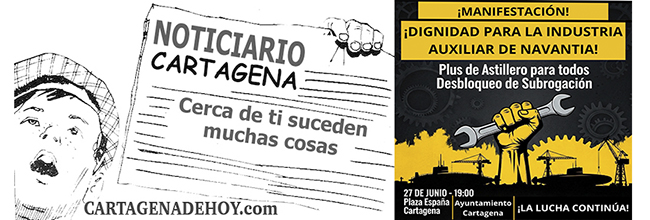 La manifestación saldrá a las 19 horas de este viernes desde la plaza de España y culminará en la plaza del Ayuntamiento, estando convocada por UGT, Unión de Empresas Auxiliares Navantia Cartagena (UEA) y CSIF.