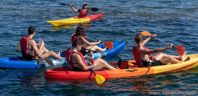 El mar también será protagonista en actividades náuticas como kayak transparente, paddle surf entre islas, wakeboard, esquí náutico, o rutas guiadas por los acantilados de Cabo de Palos, pensadas tanto para quienes buscan adrenalina como para quienes quieren conectar con el entorno natural.
