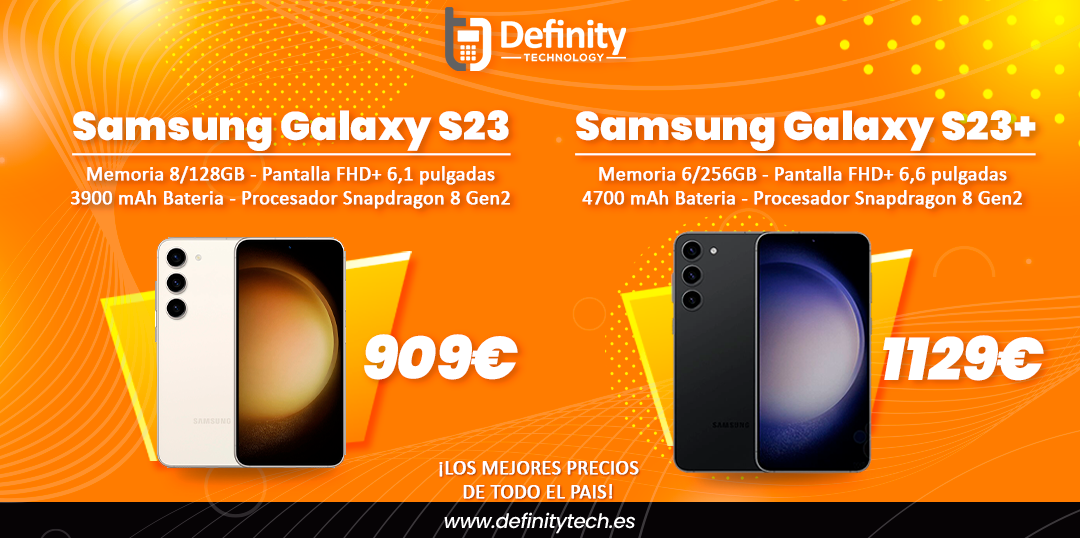 La empresa unionense tiene lo mejor al mejor precio. Dos ejemplos son las ofertas de esta semana con sendos terminales Samsung Galaxy S23 y S23+ por sólo 909 y 1.129 euros, respectivamente. No dejes pasar esta gran oferta. Pásate por nuestro establecimiento de la calle Mayor de La Unión o accede a www.definitytech.es
