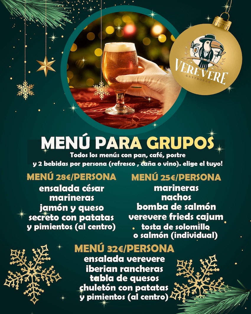¡Se acercan las fechas más esperadas del año! Ya sea para comidas de empresa, cenas con amigos o reuniones familiares, en Verevere tenemos todo listo para que las celebres a lo grande. Preparamos nuestros menús para grupos con amor, sabor y ese toque especial que hará que todos quieran repetir. ¿Qué más se puede pedir?