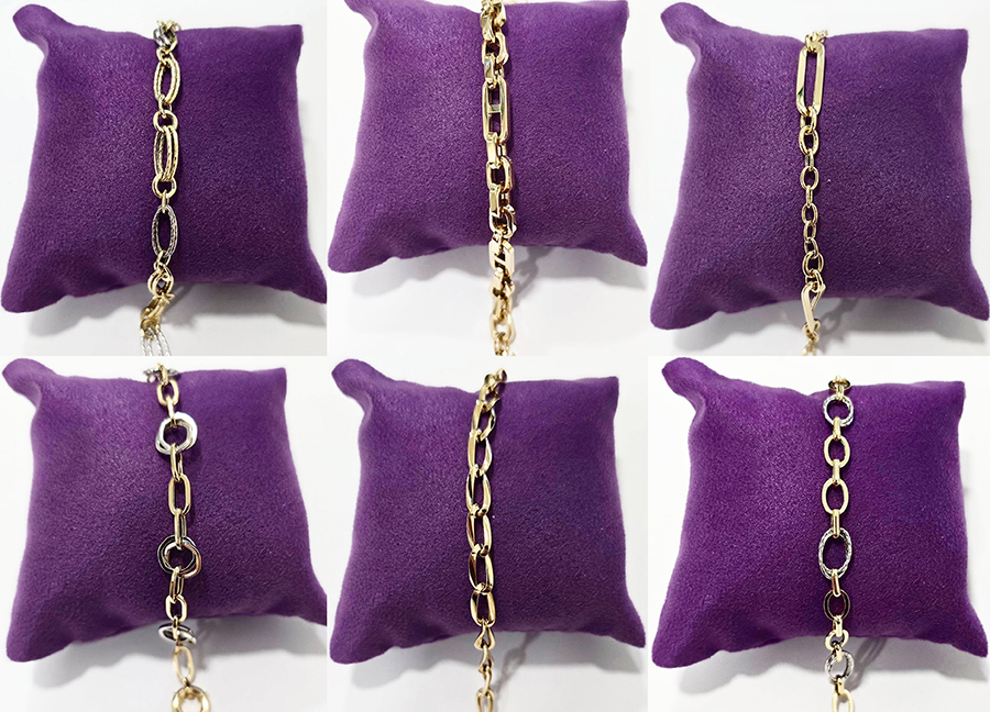 Pulseras de oro de 18 kilates. Es un ejemplo de lo que te puede facilitar el taller y fábrica de joyería Estamay, ubicado en La Palma (Cartagena) y referencia en el sector tanto en los productos que elabora como en la restauración de grandes joyas del patrimonio regional. Elaboramos cualquier tipo de joya en oro y plata con acabados artesanales de alta calidad. Elaboramos medallones, insignias, pines, sellos, pendientes, anillos…, además de restaurar objetos religiosos, reparaciones de joyería, protipado en 3D y tenemos laboratorio propio de gemología.