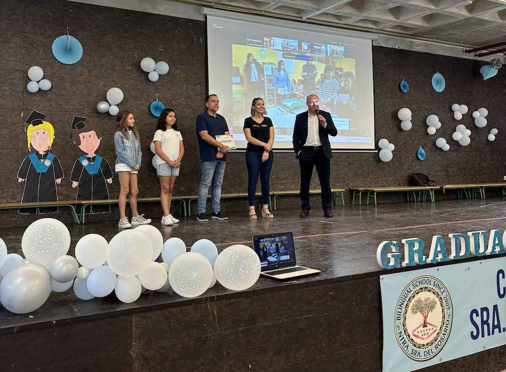 Uno de esos reconocimientos ha sido para el CEIP Ntra. Sra. del Rosario de Torre Pacheco, por ser el centro más comprometido. Se reconoce así al colegio que ha realizado más unidades didácticas, ya que las 39 alumnas que participan en el programa han realizado todas las actividades, ampliando y consolidando los conceptos trabajados. Andrés Martínez, gerente de zona de Hidrogea, junto a la concejala Asunción Pedreño, hicieron entrega del diploma de reconocimiento a Juan Carlos Buide, profesor del colegio y a las alumnas Andrea Segura de 5°C y María Lamsiah Celdrán de 5°B.