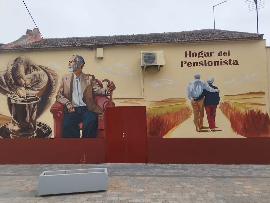El artista Jesús Lorente ha ejecutado el encargo de la asociación de vecinos que representan el paso del tiempo, la experiencia, el amor que perdura o el compañerismo de los mayores caminando juntos, entre otros valores.