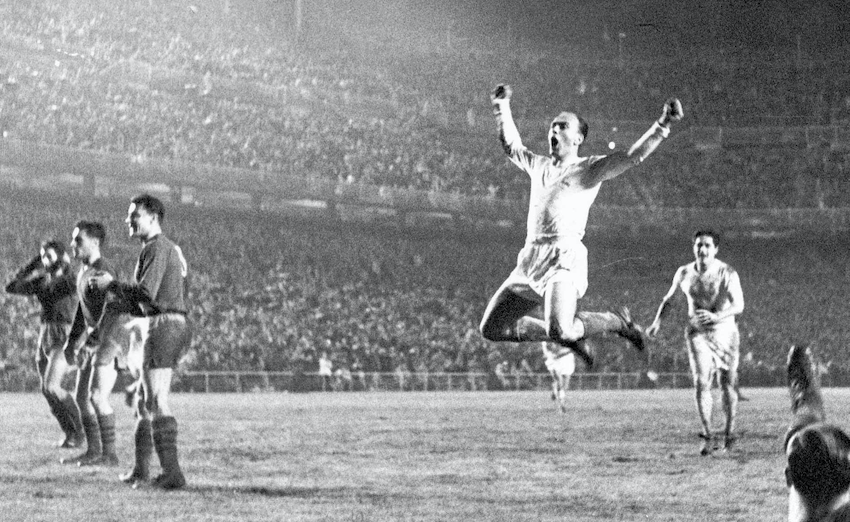 Di Stéfano jugó un papel crucial en la primera generación dorada del Real Madrid, en la que el club ganó cinco Copas de Europa consecutivas entre 1956 y 1960. Esta fue una hazaña sin precedentes en la historia del fútbol. Fue el pilar de un equipo compuesto por otras leyendas como Francisco Gento, Raymond Kopa y Ferenc Puskás, entre otros. Durante esos años, el Real Madrid se consolidó como el club más poderoso de Europa y el fútbol español se catapultó al centro del panorama futbolístico mundial.