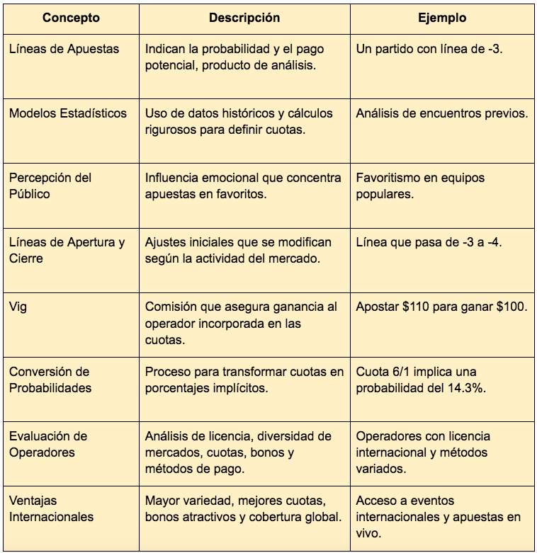 Esta combinación de análisis meticuloso y evaluaciones rigurosas no solo proporciona una visión completa de cómo se establecen las líneas de apuestas, sino que también orienta al apostador sobre qué buscar en un operador internacional. Conociendo estas claves, cualquier aficionado podrá tomar decisiones más informadas y aprovechar mejor cada oportunidad en el dinámico mundo de las apuestas deportivas.