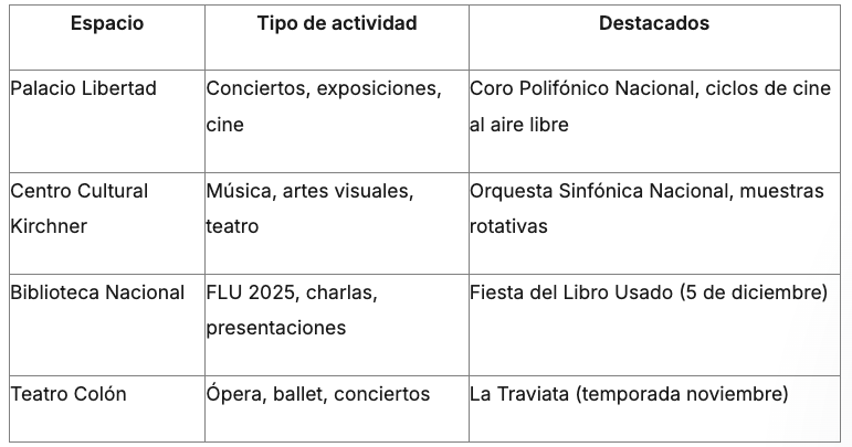 La página oficial de Turismo Buenos Aires publica cada semana un resumen ejecutivo de lo más destacado bajo el título "Qué hacer esta semana". Este recurso gratuito filtra por categorías (música, teatro, exposiciones, ferias) y te permite armar tu itinerario en minutos. La diversidad es tal que podés ver ópera en el Colón por la tarde y punk japonés en C Art Media por la noche. Buenos Aires no duerme, y su oferta cultural tampoco.