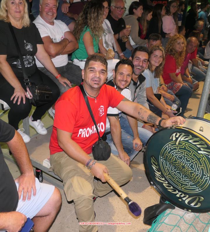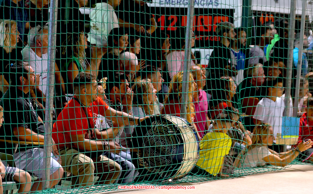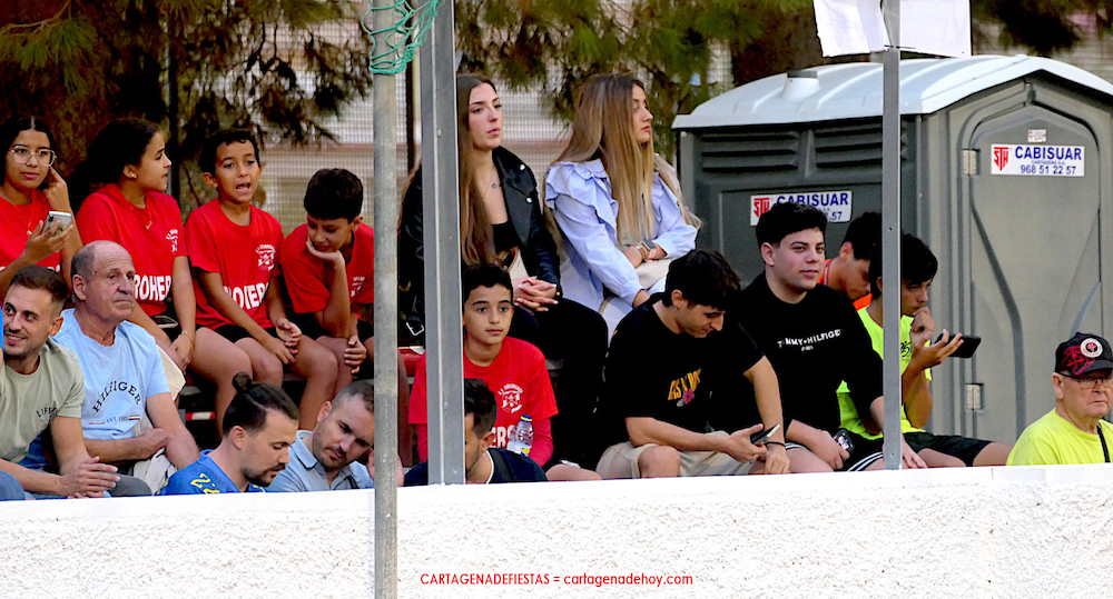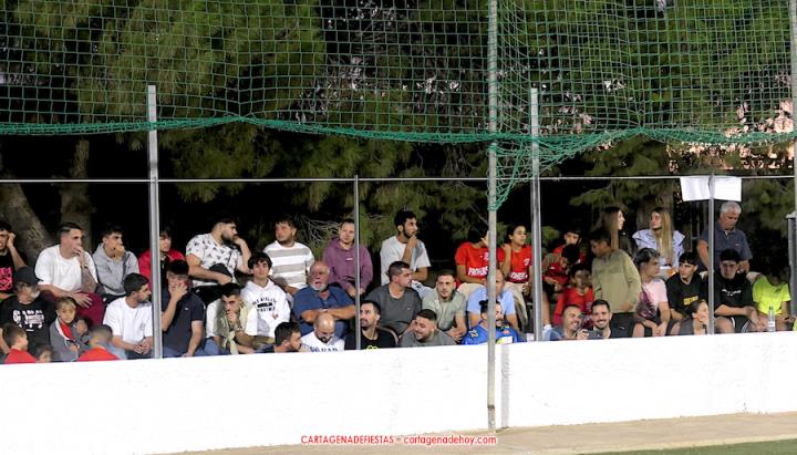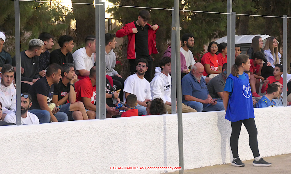 El ambiente respondió a lo esperado, con varios cientos de espectadores en las gradas que el Ayuntamiento trajo de diversos campos del fútbol cartagenero, al igual que un refuerzo para los focos. Entre el público, bastante afición visitante desplazada en cuatro autocares y algún rostro conocido, como Luis Muñoz, jugador del FC Cartagena, con algún compañero. El campo de San Juan Bosco fue un gran punto de encuentro, reencontrando a amigos y haciendo a algunos volver a ver partidos del equipo de su barrio. Por cierto, las entradas costaban 5 euros a los que estaban dentro del campo, pues los hubo también quienes vieron el partido desde terrazas de inmuebles exteriores.