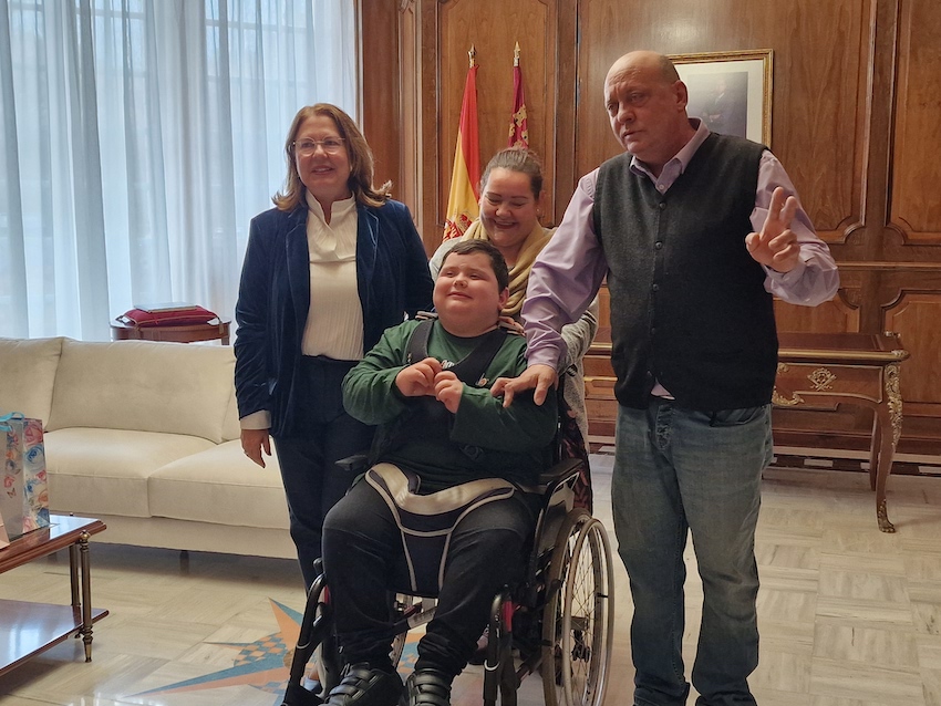 La presidenta de la Asamblea Regional, Visitación Martínez, ha recibido en Cartagena al pequeño Julián Cayetano Costa Clemente. Un niño de ocho años, paciente oncológico, que, tras superar un tumor cerebral, continúa en tratamiento por los graves efectos producidos por esta enfermedad.