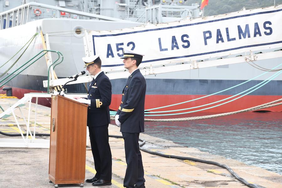 Durante la ceremonia, se realizó el último arriado de la Bandera por parte de la dotación del buque, tras lo cual la Bandera fue entregada al Almirante del Arsenal de Cartagena, quien asumió la responsabilidad del desarme del “Las Palmas”. El Capitán de Corbeta Javier Mendoza Fernández-Aceytuno, último comandante del buque, dirigió unas palabras emotivas a los presentes. Además, el Almirante del Arsenal entregó un recuerdo conmemorativo a los antiguos comandantes que asistieron al acto. Con este sencillo pero solemne acto, concluye la vida operativa de este veterano buque.