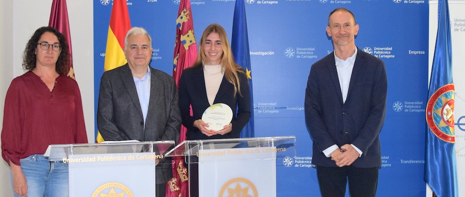 La primera edición de estos galardones, que premian los mejores trabajos fin de estudios del máster en Energías Renovables de la UPCT, han distinguido también a Adelaida Parreño Rodríguez por su proyecto 'Modelado y simulación de redes de distribución con alta integración renovable basado en soluciones open-source', con una dotación de 1.000 euros. Los galardonados han recibido su premio en un acto celebrado en Rectorado, al que han asistido el Rector, Mathieu Kessler, y el presidente de la Fundación Renovables, Fernando Ferrando.
