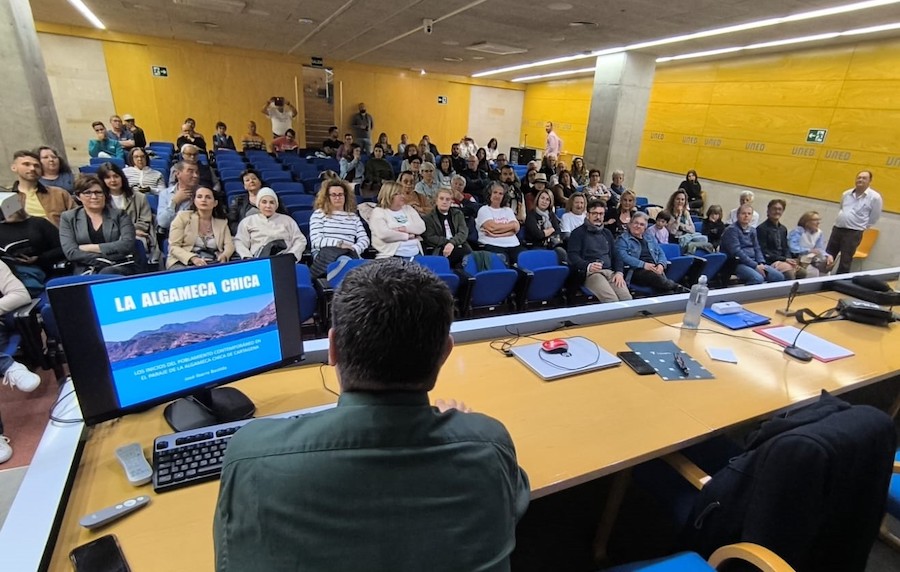 Seguidamente tomó la palabra el sociólogo y antropólogo Diego Fernández, autor del proyecto etnográfico sobre La Algameca Chica, quien destacó que el poblado tiene una historia cultural profundamente arraigada, conserva elementos identitarios únicos, es un laboratorio vivo de convivencia comunitaria, mantiene encendido un fuerte sentimiento de pertenencia, existe interés social por el entorno y tiene un enorme potencial como recurso etnográfico y turístico.