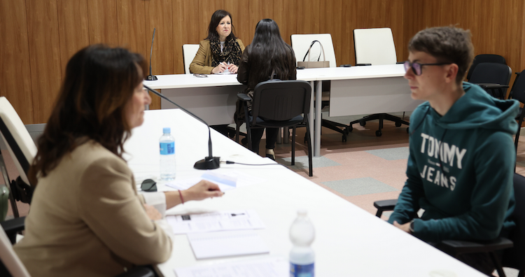 Empresas e instituciones remuneran el 68% (dos de cada tres) de las formaciones externas de los alumnos de la Politécnica de Cartagena, siendo la media de 505 euros. En los dos últimos años se ha percibido un aumento de diez puntos. Fotografía adjunta de entrevistas de trabajo a alumnos llevadas a cabo en el 'Foro de empleo' celebrado hoy
