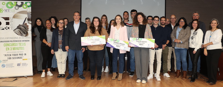 Clara Cubillas Para, investigadora predoctoral del programa de Ciencias Económicas Empresariales y Jurídicas, ha ganado el primer premio de la quinta edición del concurso 'Tesis en 3 minutos', celebrado hoy en la UPCT, por la exposición de ‘Hoteles e industria 4.0: Renovarse o estancarse’. Han sido 1800 euros los que se han repartido entre los vencedores.