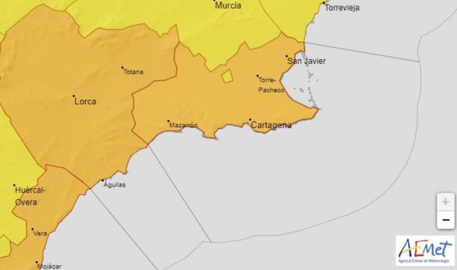 El Ayuntamiento de Cartagena informa que la alerta que emite la AEMET se centra en un chubasco tormentoso que se desplaza desde Águilas hacia esta zona, pudiendo caer en una hora hasta 30 litros por metro cuadrado. Pasarán la nube después de las cuatro de la tarde.