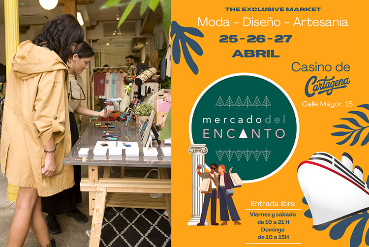 Los días 25, 26 y 27 de abril se celebrará en el Casino de Cartagena el 'Mercado del encanto' con la participación de marcas emergentes, diseñadores, artesanos locales y de otras partes de España. Un bonito y cuidado evento donde se podrán encontrar productos únicos y diseños especiales, al mismo tiempo que se podrá disfrutar de una experiencia de compra diferente. Entrada libre y gratuita.