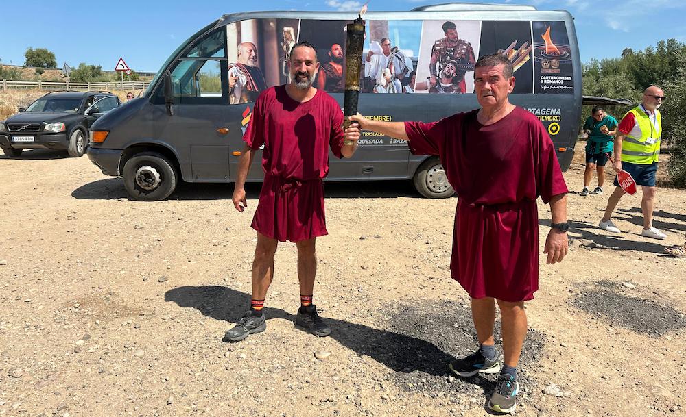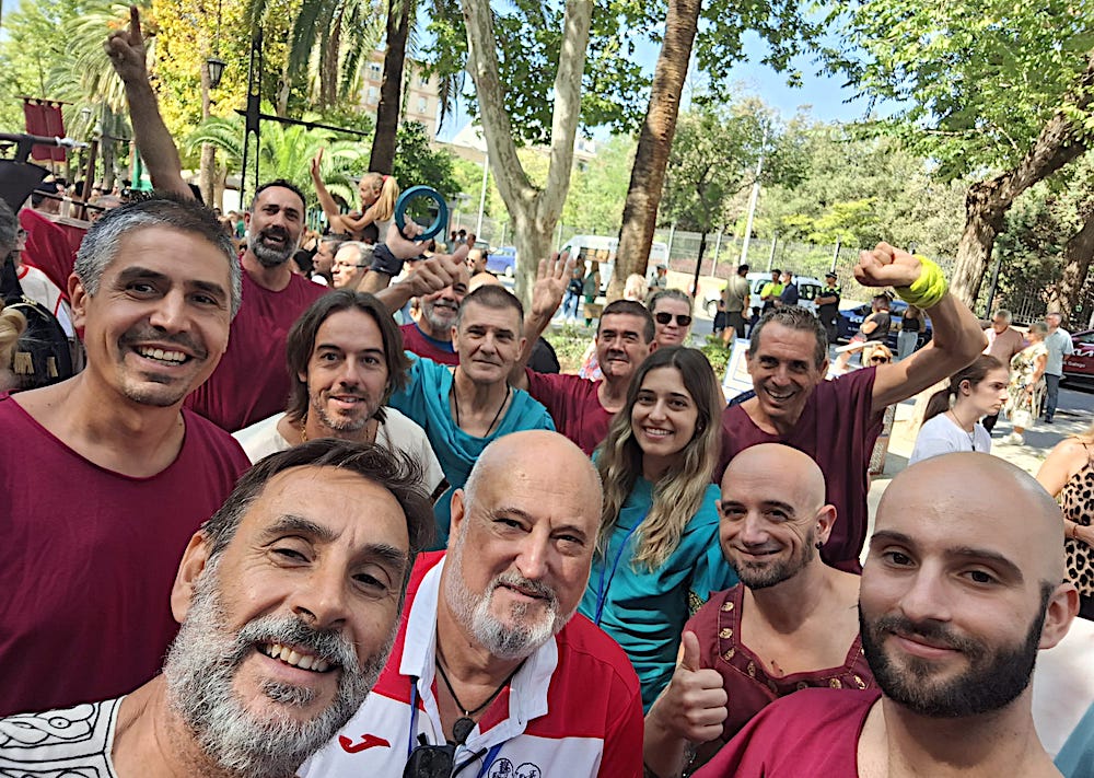 La salida del fuego de Carthagineses y Romanos ha movilizado a decenas de cartageneros que se han desplazado a Linares, entre los que figuran festeros enrolados en otras entidades, como Mujeres Carmesí, CD Manzanicos, Vista Alegre Trail, etc.