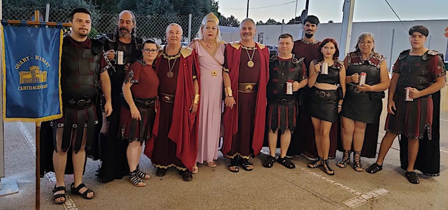 Con motivo de que una de las dos llamas sagradas de Carthagineses y Romanos parte este año de Santomera, el ayuntamiento de esta localidad invitó a festeros cartageneros a conocer sus fiestas (ayer concluyeron) y tener una jornada de convivencia con sus festeros.