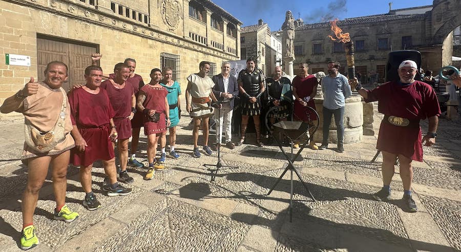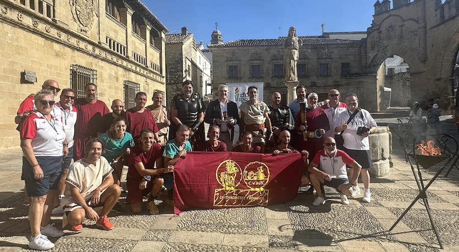 Tras recorrer los primeros 31 kilómetros, Baeza ha sido la población donde el fuego sagrado de Carthagineses y Romanos ha hecho su primera escala tras salir el sábado de Linares. La comitiva cartagenera fue recibida por el concejal de Turismo y Promoción, José Antonio Jiménez, en la plaza del Pópulo.