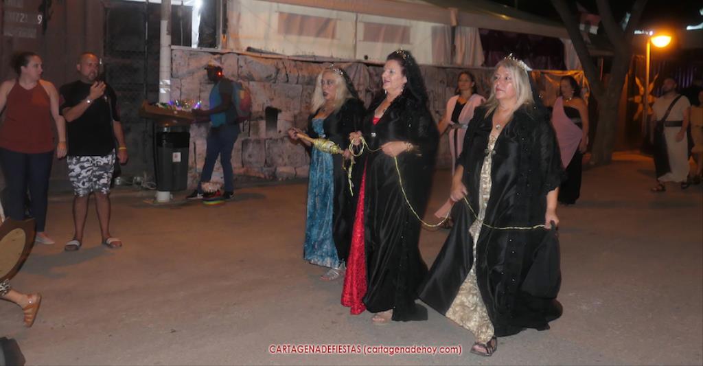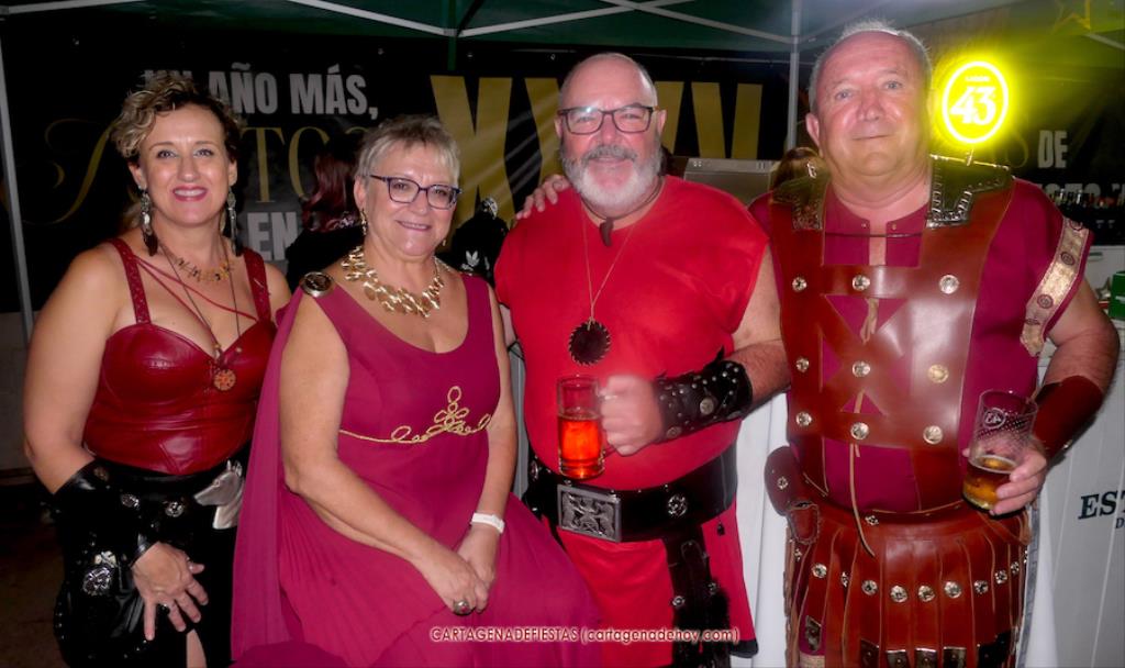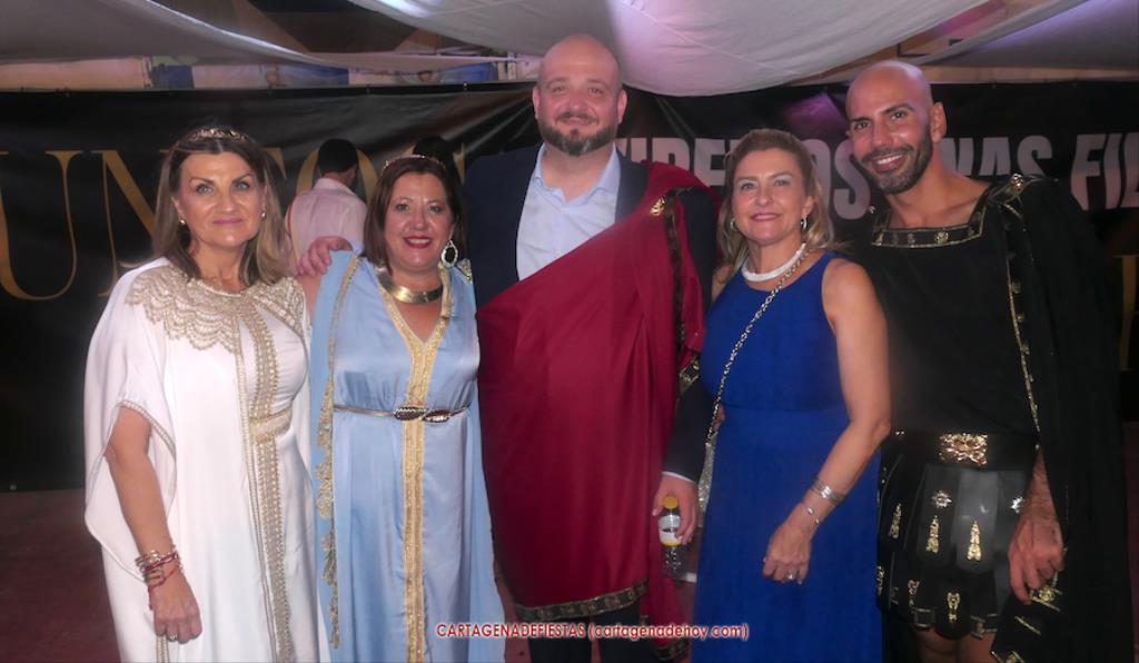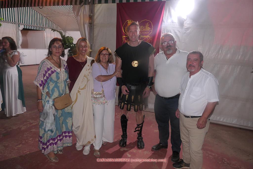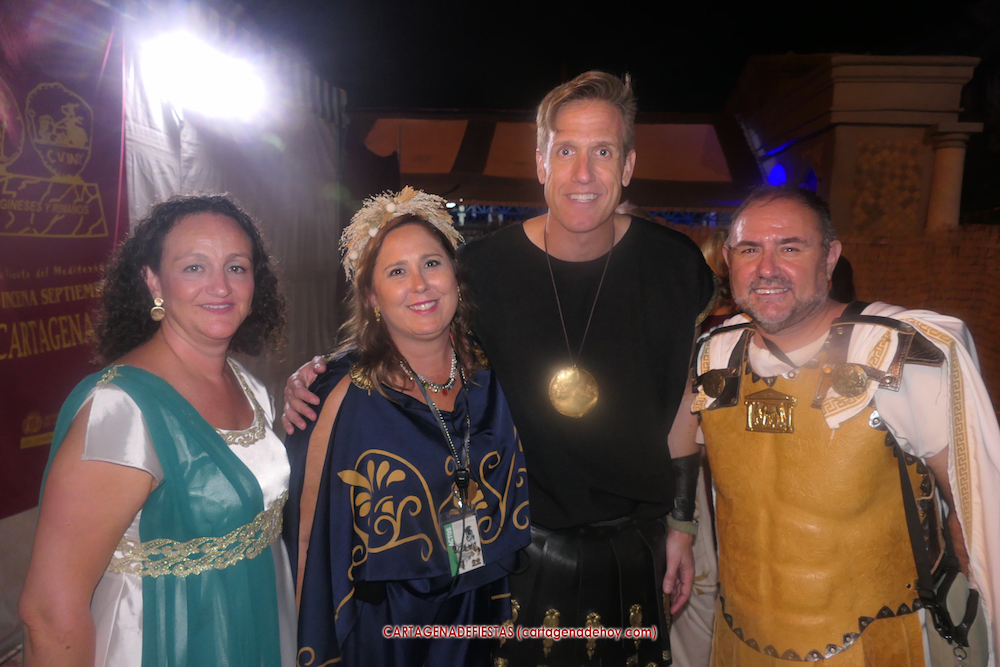 El corte de la cinta lo llevó a cabo la primera autoridad local, Noelia Arroyo, dando los siguientes cortes a la cinta el presidente de la Federación de Tropas y Legiones, José Antonio Meca; el alcalde de Santomera, Víctor Manuel Martínez; y la teniente de alcalde de Linares, Mariola Aranda. El confetti envolvió ese momento, para a continuación explotar en el cielo los fuegos artificiales mientras que la comitiva recorría la calle carthaginesa del campamento con dirección a la zona de protocolo, donde tuvo lugar 'el vino (y tapeo) de honor', en una velada en la que hubo música en directo y en la que se brindó por el buen devenir de las fiestas, resaltando el alcalde santomerano que este año han quedado unidos por el fuego sagrado Cartagena y su tierra.