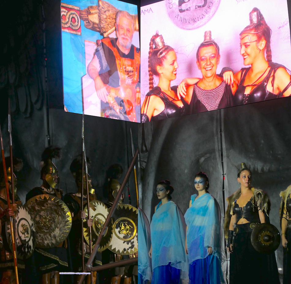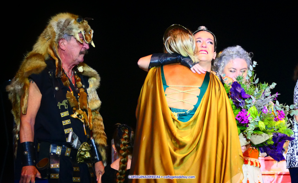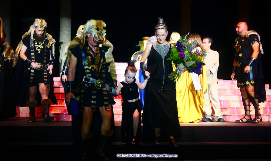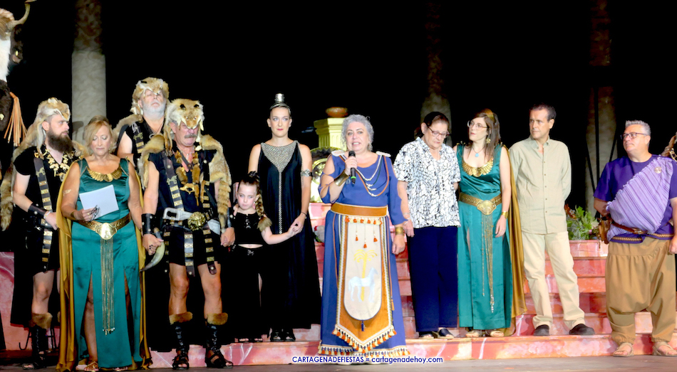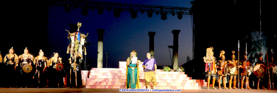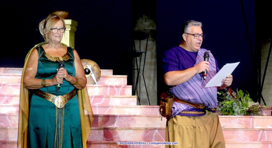 La presentación de esta previa a la representación de la 'Fundación de Qart-Hadast' en el escenario de puerto de Cartagena estuvo a cargo de Conchi Gil y de José García Madrid, ubicándose festeros de las tropas de los dos homenajeados en los laterales.
