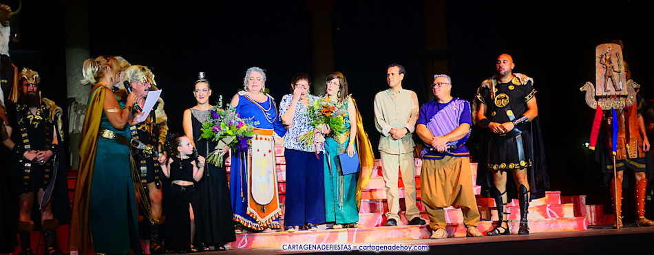 Tras la semblanza a estos dos festeros que tan honda huella han dejado en Carthagineses y Romanos, habló la presidenta de Consejo Carthaginés quien recordó que ambos formaron parte de su junta directiva. Lola Pérez y el vicepresidente de la Federación de Tropas y Legiones, Eduardo Conesa, entregaron sendos ramos de flores a las familias entre los largos aplausos de los espectadores.
