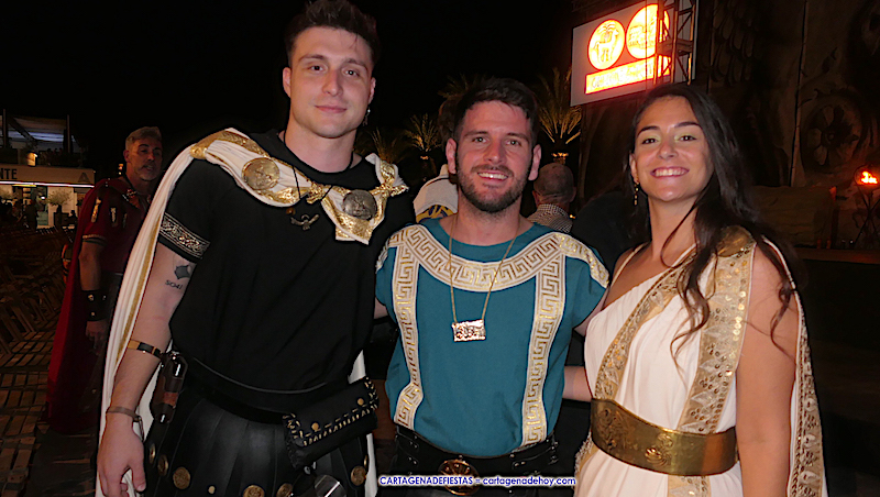 Ángel Celdrán, tras su brillante representación anoche como Asdrúbal en la Fundación de Qart-Hadast, posa en el centro entre Chema Barcelona y María Sabater, quienes esta noche se estrenan como actores con los 'Comicios centuriados', reto que afrontan con enorme ilusión.