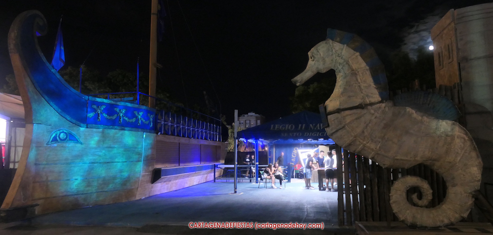 La legión de Sexto Digicio en las fiestas de Carthagineses y Romanos ha estrenado este año en su recinto del campamento una gran representación de un barco de guerra romano.