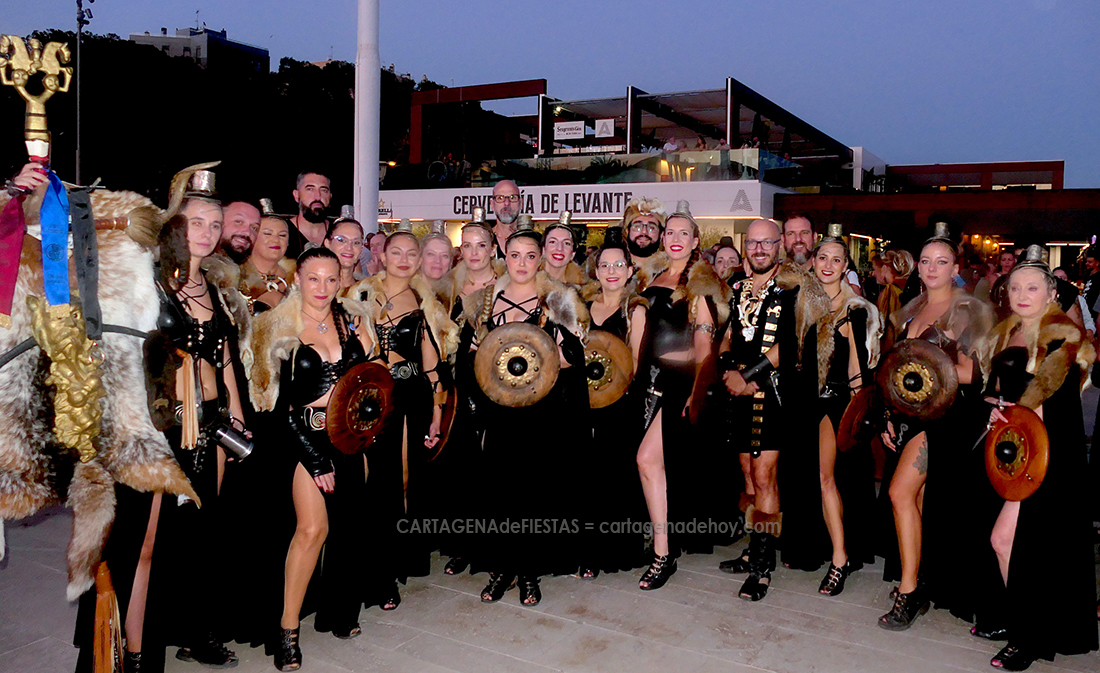 La tropa carthaginesa, en el transcurso de su anual almuerzo, a quienes representan desde 2023 a Aníbal y Escipión por el buen papel ofrecido y la cercanía con los festeros púnicos. La tropa, que tiene este año 70 guerreros y 30 ciudadanos adultos, organiza el martes el concurso de 'la sokatira' y el jueves estrenará un nuevo formato en la 'devotio'.