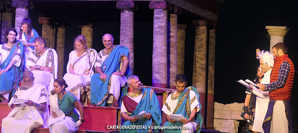 La sesión, que esta vez no fue el acto romano que cerró el domingo, sino el primero de la tarde, se desarrolló con una amplia sucesión de críticas y ocurrencias para reflejar, principalmente, retrasos en proyectos u olvidos. El hilo conductor fueron las 'Ramblalimpiadas', "que dan muchos sestercios", como dijeron. A partir de ahí se recorrió un amplio escenario de críticas, como los vertidos que siguen hacia el Mar Menor, El Hondón ("contaminan unos y pagan la descontaminación otros"), las eternas obras en el entorno de Héroes de Cavite, los baches de las carreteras, el fiasco del 'plan sombra', que se día no lectivo en los colegios de aquí el martes del 'Bando de la huerta', que venga a Cartagena la 'Reina de la Huerta' y no vayan a Murcia carthagineses y romanos ("Lo mismo es que había que ir en tren"), el uso exclusivo para el FC Cartagonova del estadio municipal Cartagonova, el caurtel de la Guardia Civil, los nuevos juzgados que no llegan, las fiestas de ricos en la Isla del Ciervo, que se cierre el circuito de velocidad en Cartagena y se pueda abrir en Fuente Álamo ("¿no sería mejor llevaron a Corvera para que tenga actividad el aeropuerto?"), las subidas de precios de alimentación, retomar el 'Consejo de Cultura'... y, entre otros, acabar con el parcheo de la plaza del Lago y diferenciar entre tener ruinas de restos romanos y restos romanos en ruinas, a lo que se suman buenas infraestructuras para los alumnos de Enfermería y dotar de recursos a AFA para su labor con el Alzheimer.