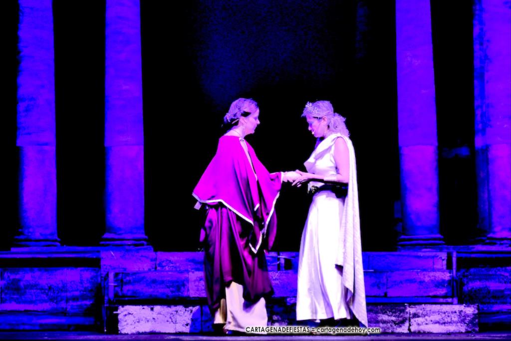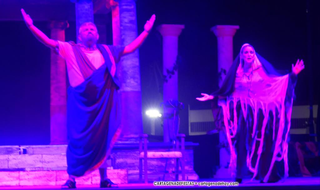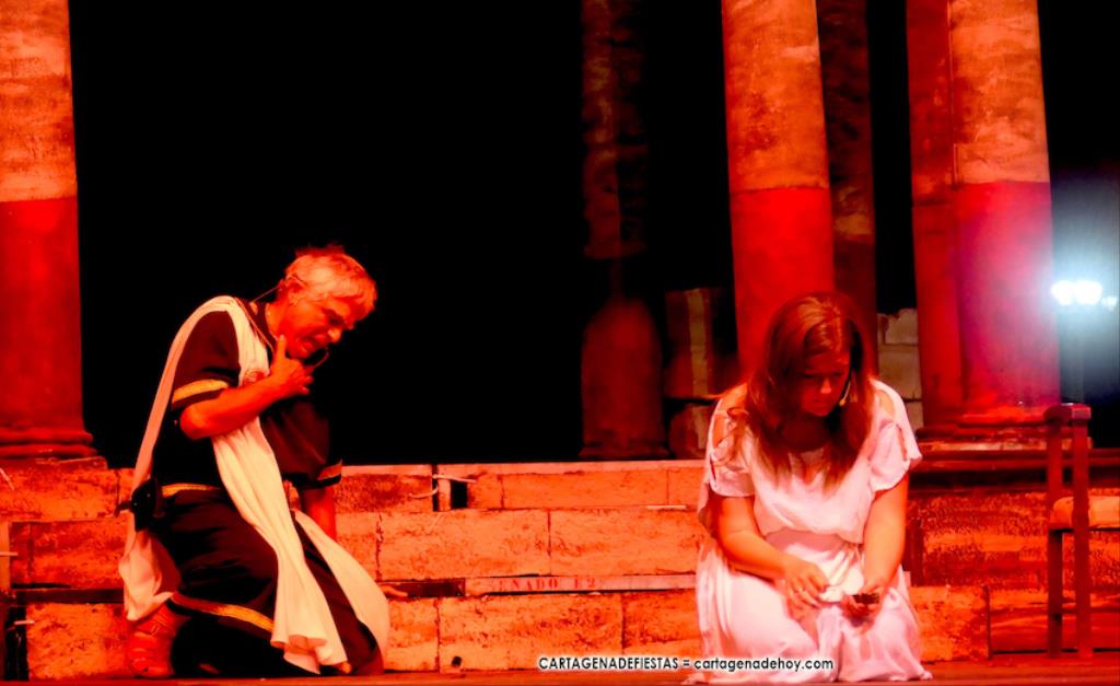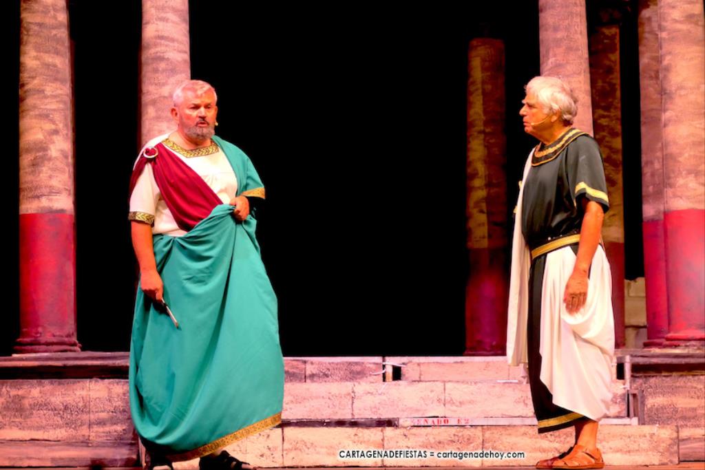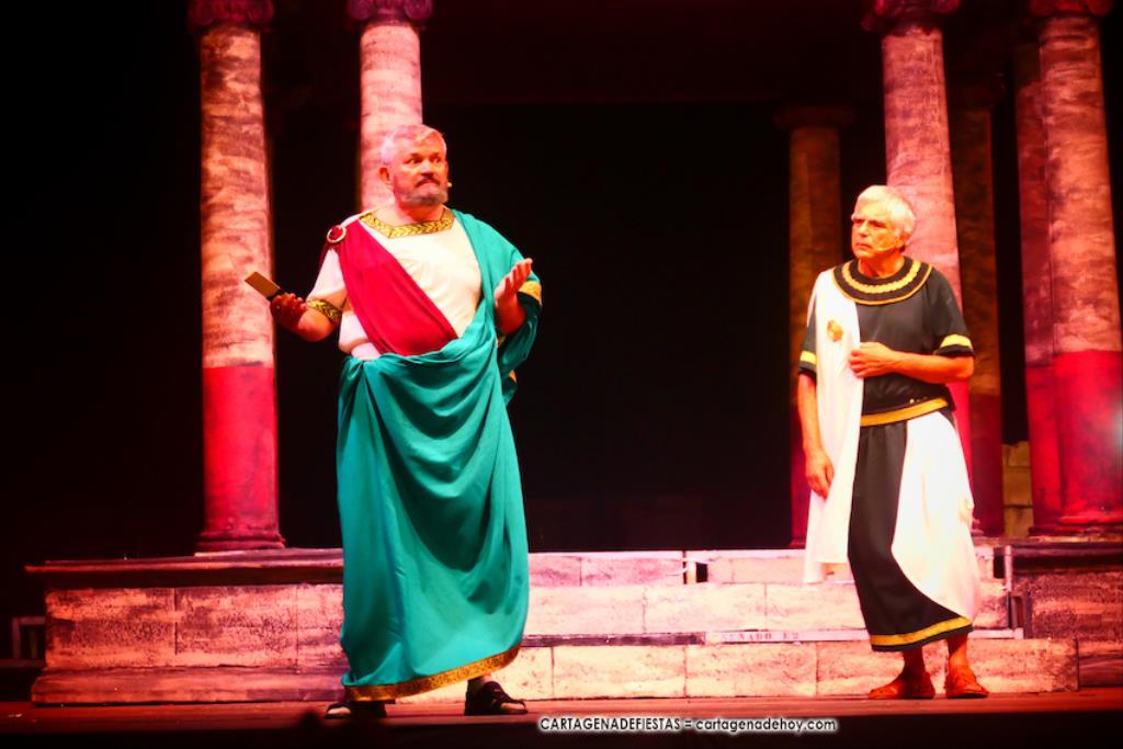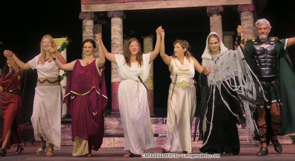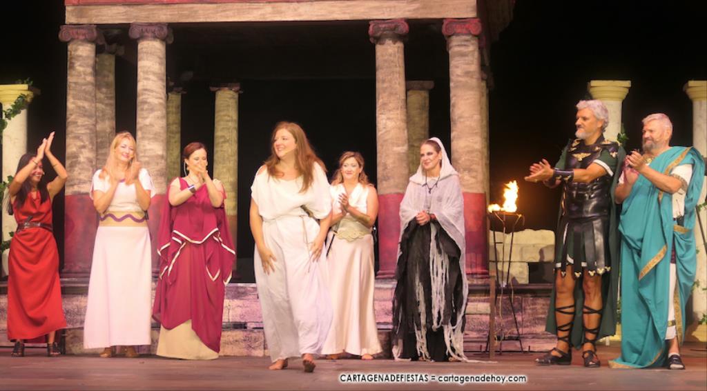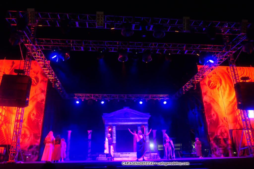 La IA ya está en las históricas fiestas de Cartagena. Su primer acto de presencia (s.e.u.o.), lo ha hecho a través de la representación de la 'Destrucción de Sagunto' con la rockera canción que acompañó al saludo de los actores tras acabar la puesta en escena, que en esta ocasión tuvo, por primera vez también, a Juanjo Núñez con la 'batuta' de dirección, además de interpretar a Valerio (antes Teucro), que este año fue el último legionario en morir.