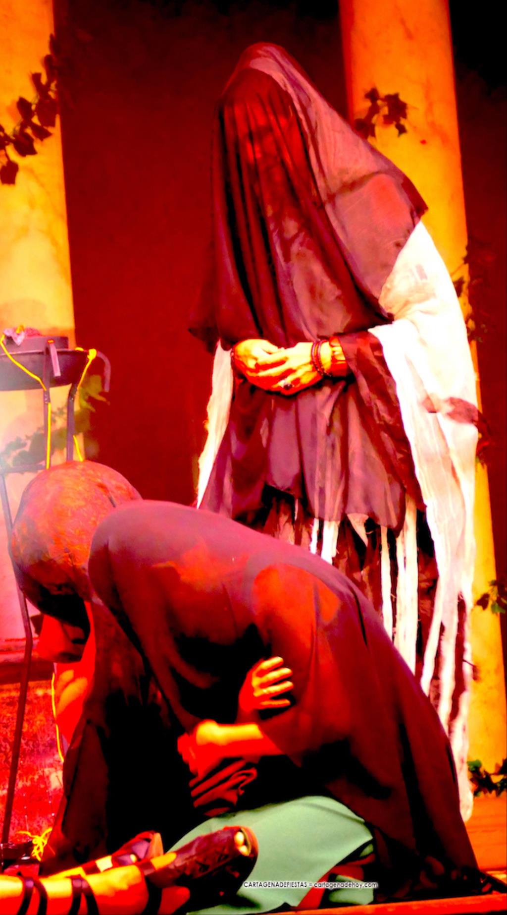Y no faltó, por segundo año, la alegoría de la destrucción de la ciudad en tétrica representación a cargo de Marisol Ferreira. "Bien y mal, la muerte llegará; bien y mal, el silencio reinará", canta. "¿Mereció la pena Sagunto?", pregunta. "Mereció la pena", le responderá instantes antes de su combate final Valerio.