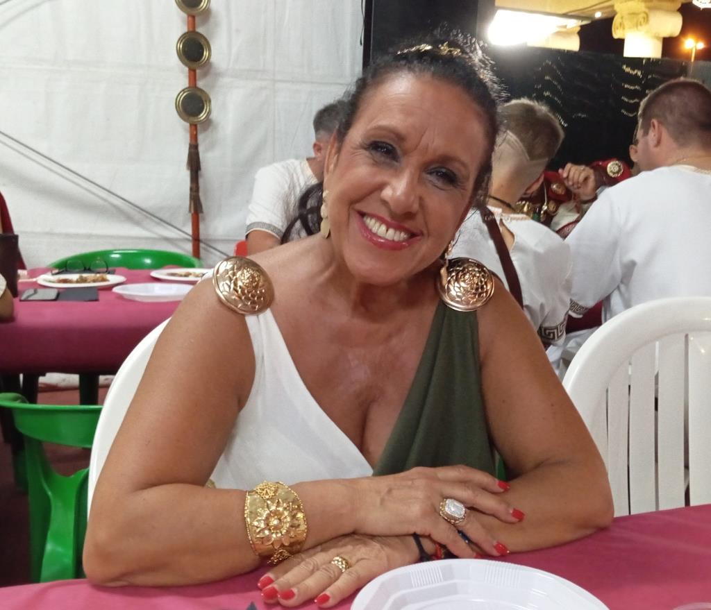 Igualmente, también ha asistido la histórica festera Toñi Moreno, quien fue presidenta de la Legión desde el año 2001 al 2006, presidenta del Senado Romano del 2008 al 2010. Asimismo y también encarnó a la primera Diona Ceres. De hecho, piensa presentarse a las elecciones a la presidencia de la Federación que se celebrarán en los próximos meses.